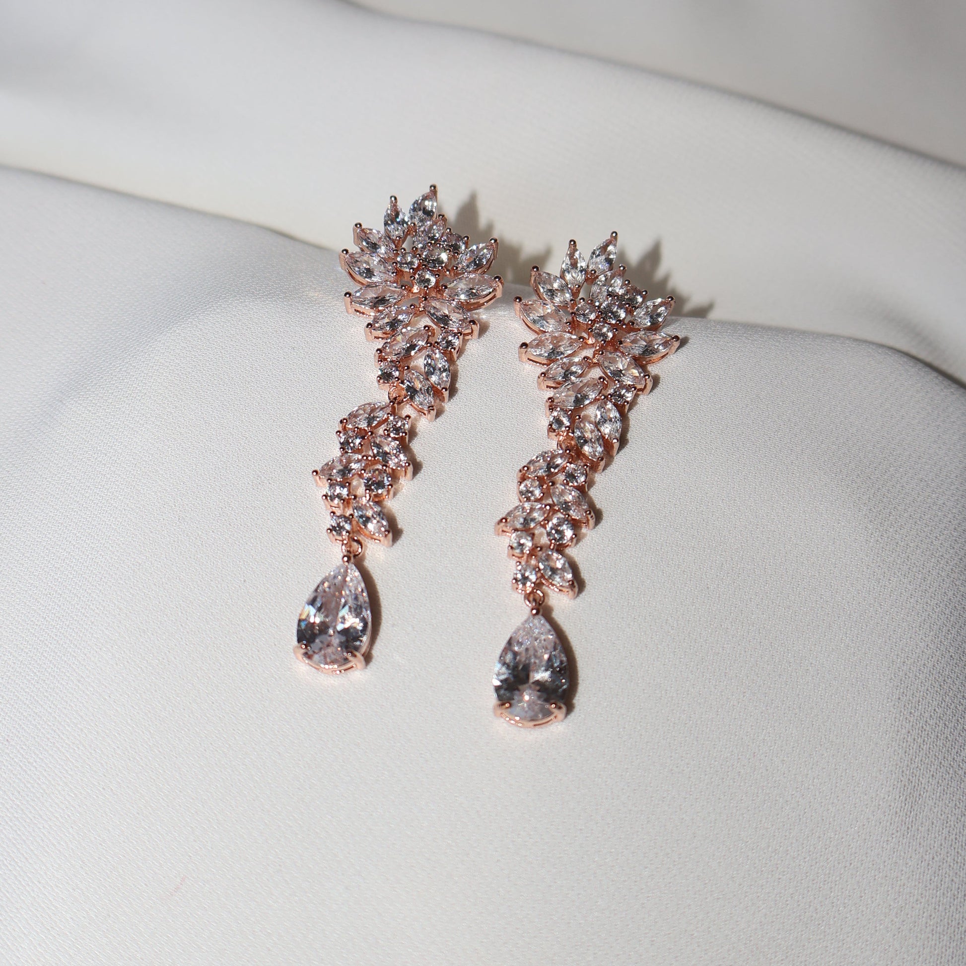 Gli orecchini ANASTASIA uniscono l'eleganza boho a un design raffinato. I pendenti sono composti da numerosi zirconi luminosi che formano un motivo floreale e terminano con una pietra a goccia più grande. Ogni pietra cattura la luce con delicatezza, offrendo un effetto brillante e sofisticato. Perfetto per chi desidera un accessorio versatile che valorizzi qualsiasi outfit con un tocco di glamour discreto e contemporaneo.